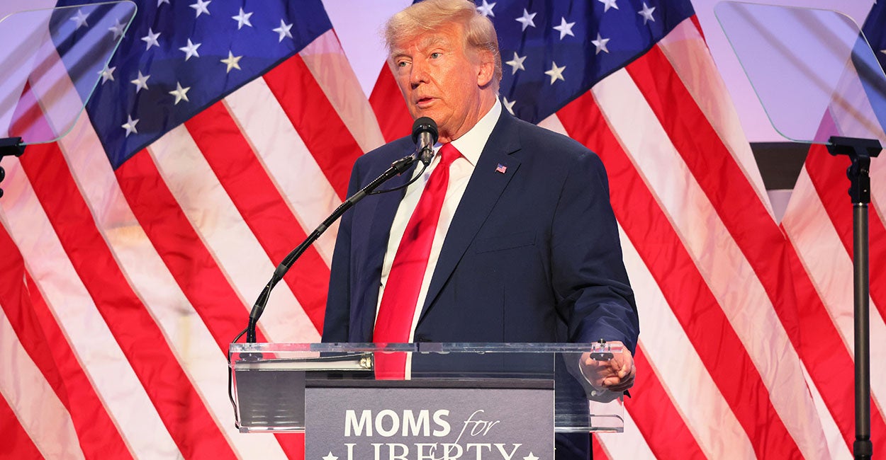 Trump began by praising Moms for Liberty, a parental rights group that stands up to school boards across America, in the face of threats, violence, and protests.
