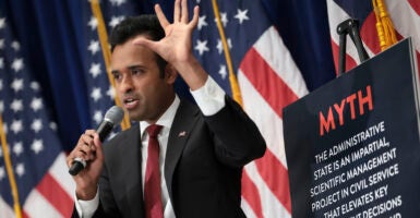 Ramaswamy argued during his speech at the think tank started by former Trump administration officials that under civil service laws a president could fire a mass number of employees if it’s under an official reduction in force. He contended that those laws prevent firing only individual employees.