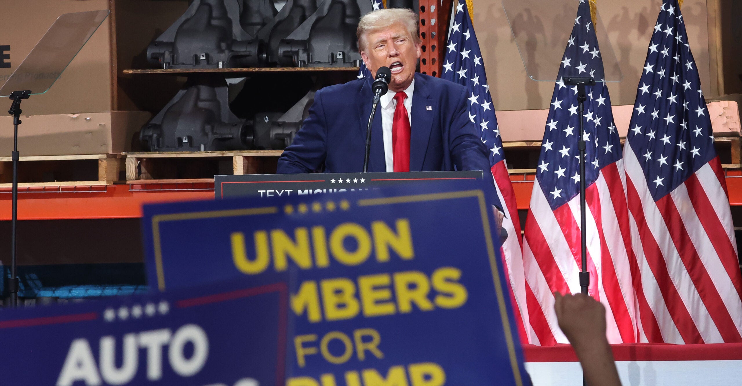 Trump spoke at Drake Enterprises, a nonunionized auto parts supplier based—interestingly enough—in Clinton Township, just northeast of Detroit. In one of the surprises of the 2016 presidential election, Trump narrowly carried Michigan against Democrat Hillary Clinton.