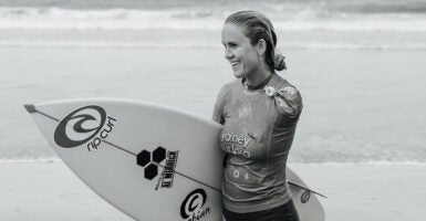 Hamilton was attacked by a shark while surfing when she was 13, resulting in the loss of her left arm, but has returned to professional surfing. A wife, a mother, and an inspirational faith figure to many, she is the subject of the 2011 biopic “Soul Surfer.”