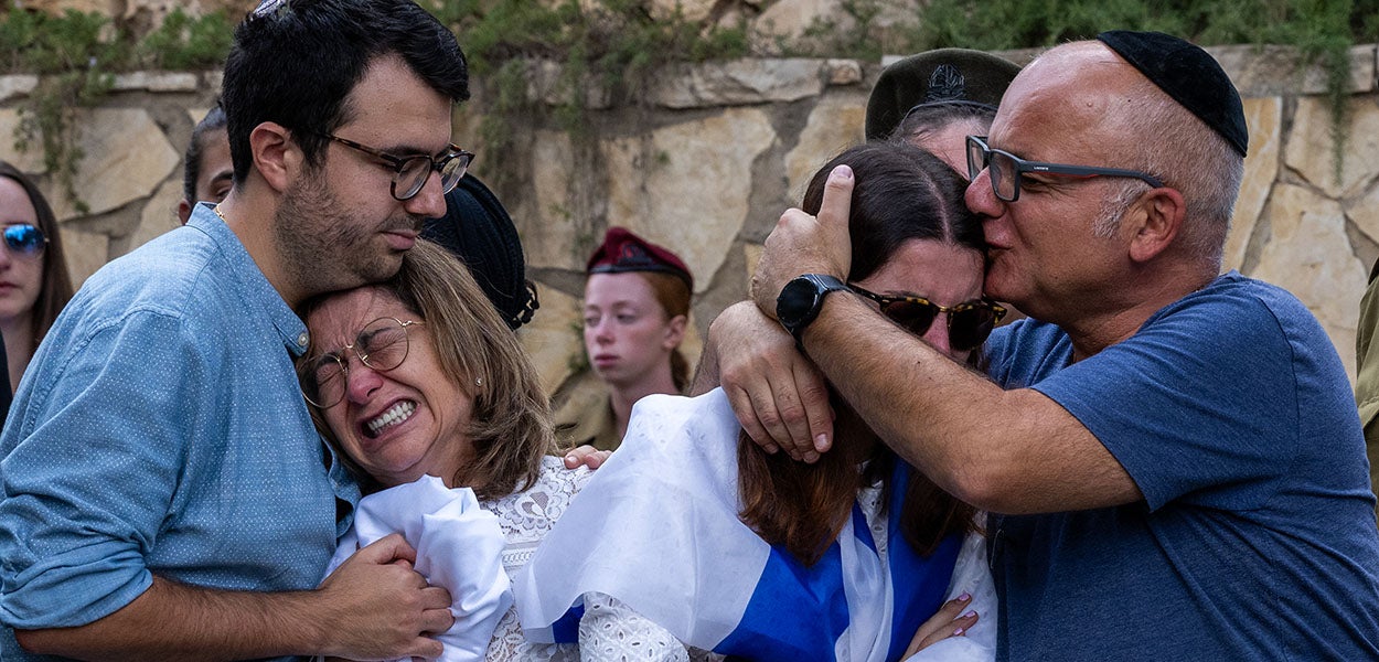 And so we sing and dance around the Torah; we raise our glasses to wish the newlyweds a big mazel tov. We do this while the blood of the decapitated babies, the children burned alive, the Holocaust survivors wantonly slaughtered, and the other thousand-plus Israelis viciously murdered is still fresh.