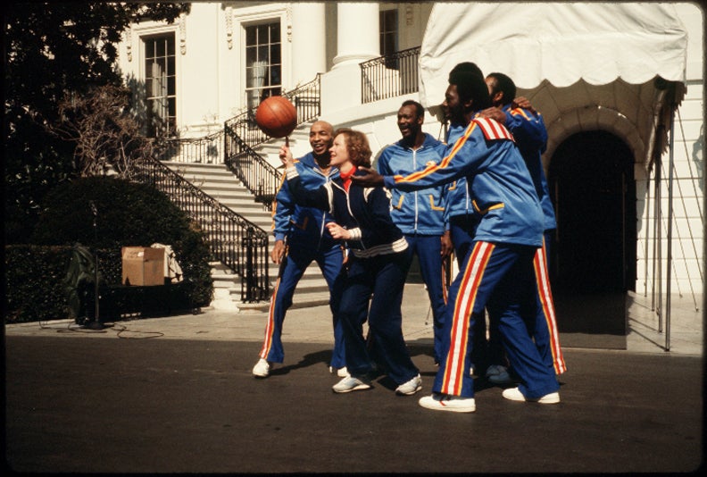 First lady Rosalynn Carter plays basketball with the Harlem Globetrotters in March 1980. (Photo: Diana Walker/ Getty Images).
