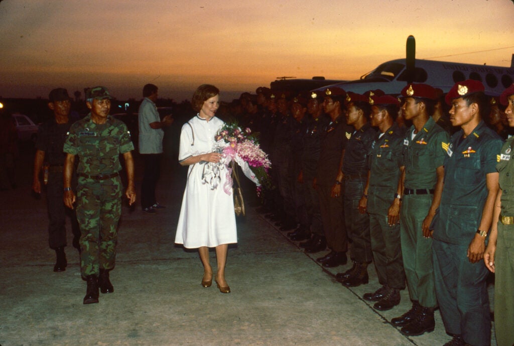 First lady Rosalynn Carter is welcomed by members of the Thai military on Nov. 7, 1979. (Photo: Diana Walker/Getty Images)