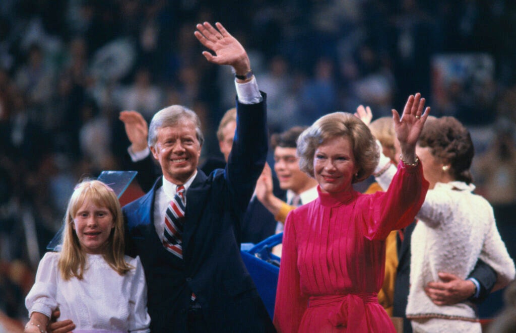 Jimmy and Rosalynn Carter and their daughter Amy wave to a crowd at the 1980 Democratic National Convention. (Photo: Bettmann/Getty Images).