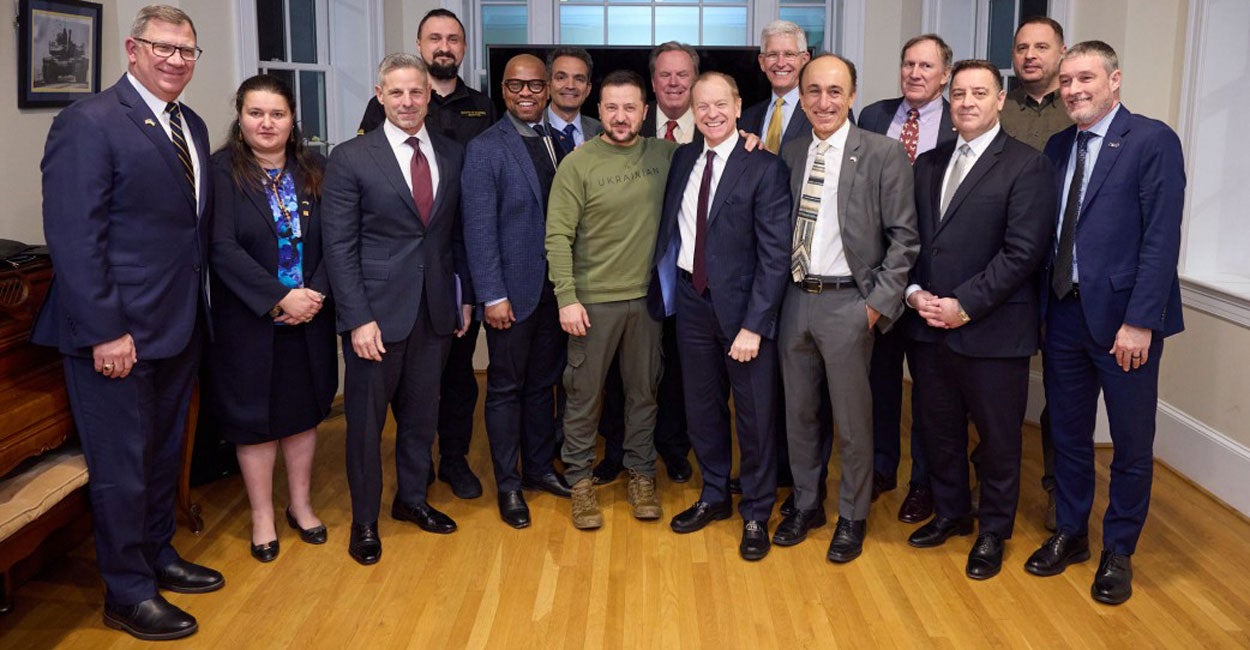 Zelenskyy disclosed the meeting in posts on X—first a photo with about a dozen well-dressed executives and then a 77-second video with highlights from their meeting at Ukraine House in Washington.