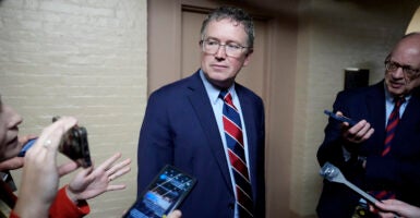 Rep. Thomas Massie, R-Ky., announced on social media Tuesday that he’s co-sponsoring a motion to vacate the chair against House Speaker Mike Johnson, R-La.