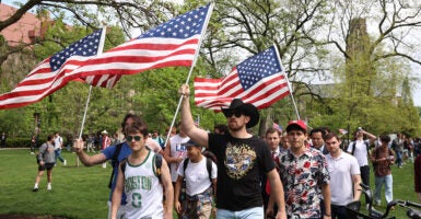 As anti-Israel rioters occupy college campuses and harass Jewish students in the name of supporting Palestine, brave young men are standing up to them, rallying around the American flag and the national anthem in counterprotest. This patriotic—or, as conservative Gen Zers might say, “based”—backlash may set a new tone as America moves from a destructive spring into a more hopeful summer.