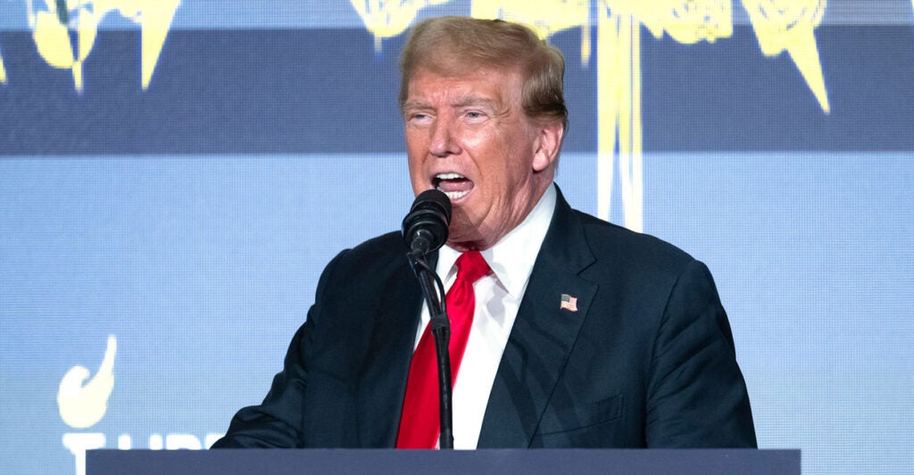 “As we speak, Joe Biden’s minions are in Geneva, secretly negotiating to surrender more of our liberty to the World Health Organization,” Trump told the Libertarian National Convention, eliciting a fulsome chorus of boos. “Drafts of the agreement show that they want to subjugate America to foreign nations, attack free speech, [and] empower the World Health Organization to redistribute American resources.”