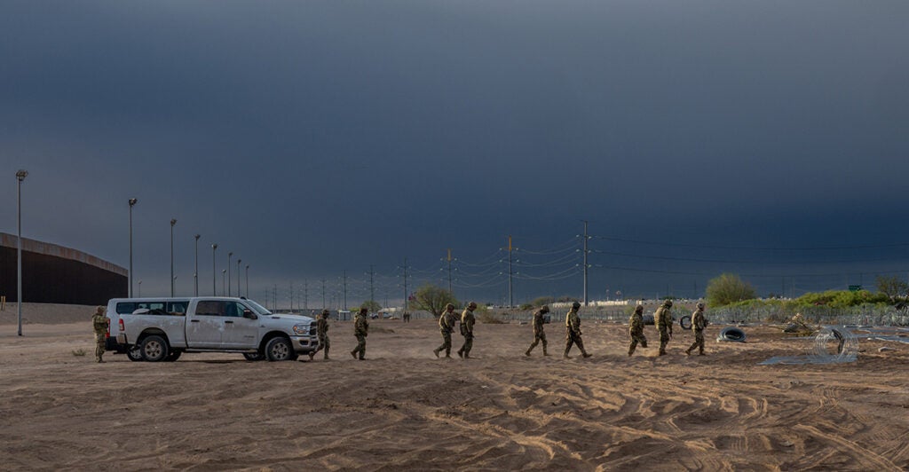 One of the men is reported to have crossed the southern border in April and another overstayed a student visa. The two men tried to drive onto the base “and only due to the quick thinking of some of these guards were they stopped,” Kirchner said, adding that “people need to understand what’s going on, because this is a national emergency.”
