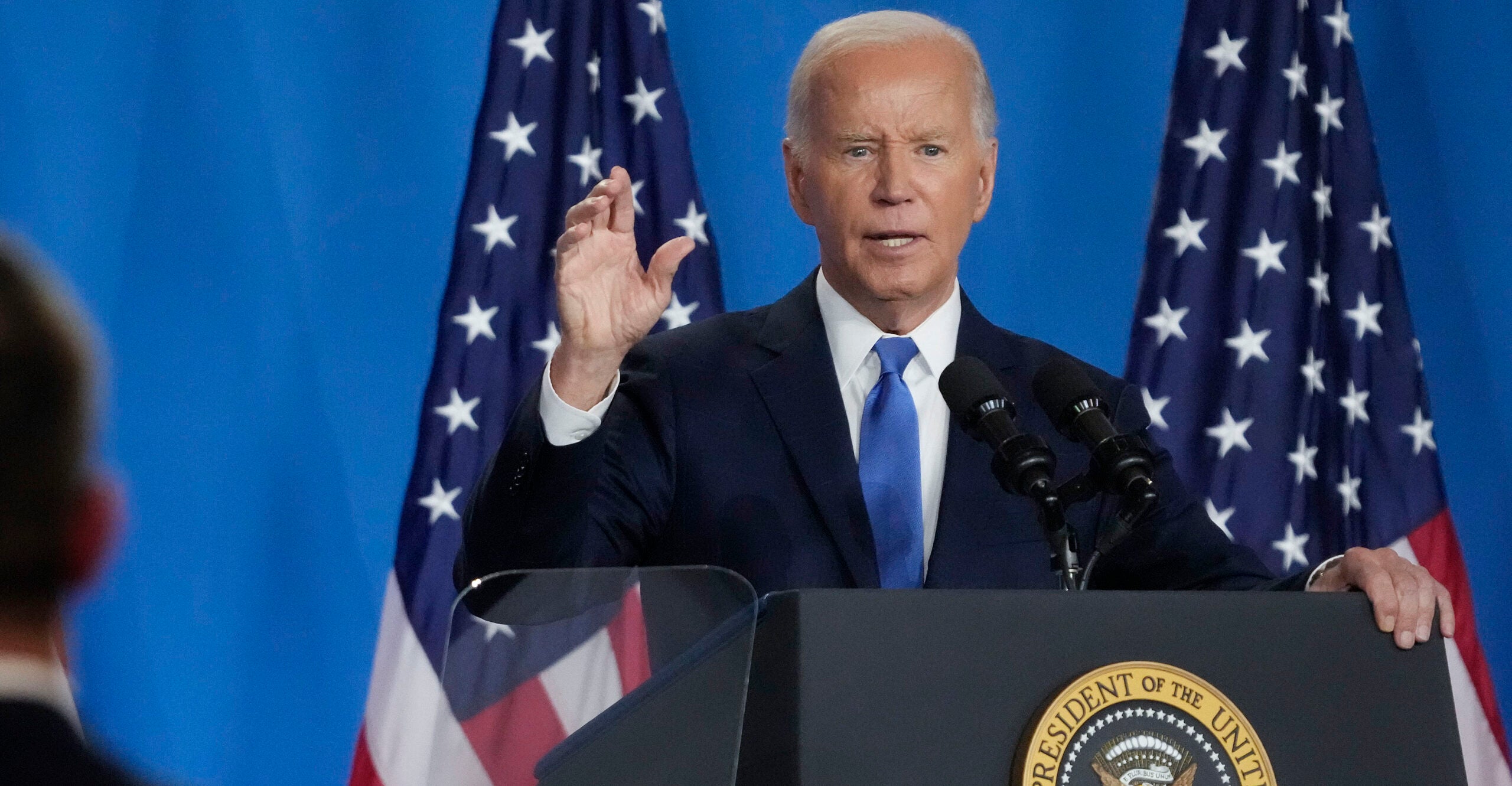 Biden talked about his success on the global stage at the top of the press conference, held at the conclusion of the 75th anniversary NATO summit in Washington. He also slammed former President Donald Trump, claiming his opponent “has no commitment to NATO.”