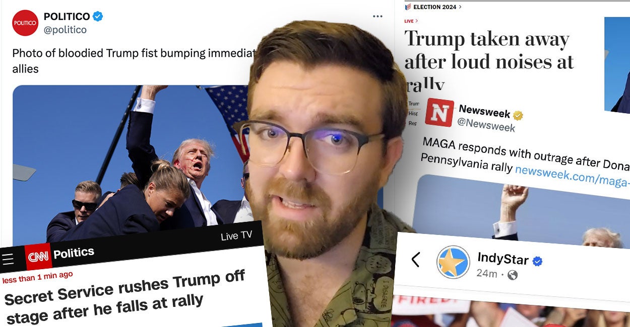 Now, not all of the left-leaning outlets did this. ABC News, CBS News, NBC News, and others reported correctly, along with center, independent, and right-leaning sources, that Trump was shot and Secret Service agents rushed him from the stage at a campaign rally.