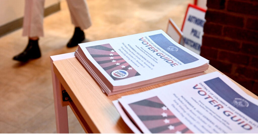 In other words, those in the Mason community that click on these links that the university sent to its entire community would find issues and an overall framing that support Harris.