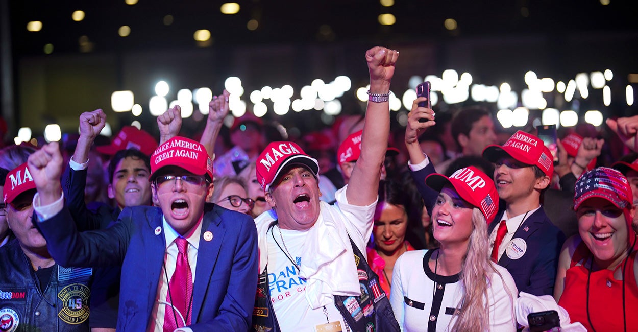 WEST PALM BEACH, Fla.—A room full of MAGA hat-wearing Americans cheered loudly at 1:47 a.m. Wednesday when Fox News announced that former President Donald Trump had enough electoral votes to win back the White House.