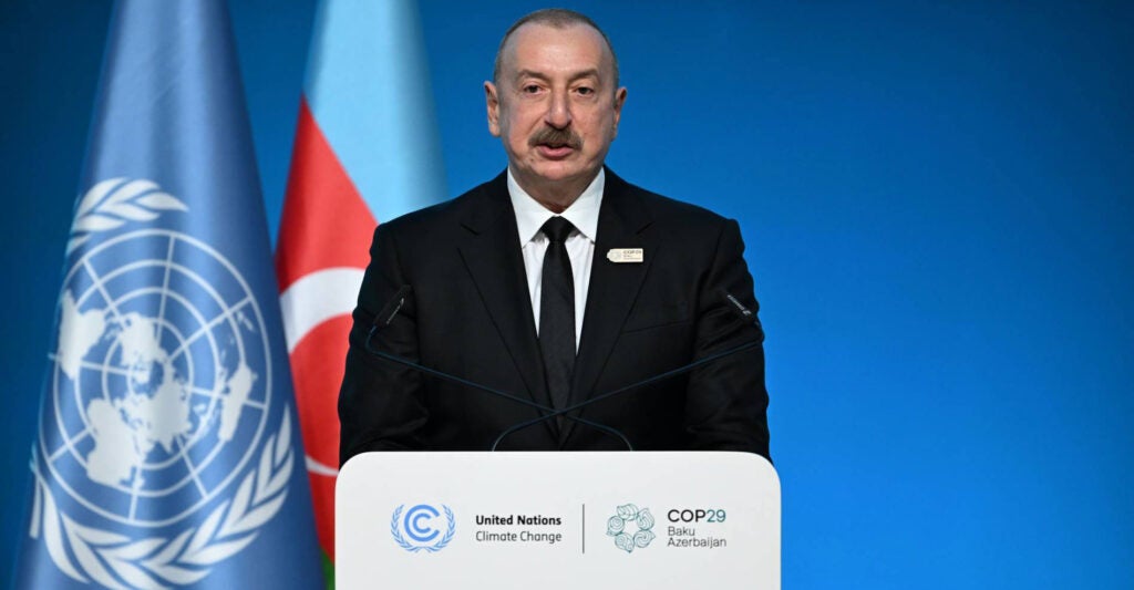 “I have to bring these figures to the attention of our audience, because right after Azerbaijan was elected as the host country of COP29, we became a target of a coordinated, well-orchestrated campaign of slander and blackmail,” said Aliyev. “Western fake news media and so-called independent [nongovernmental organizations] and some politicians, as if [they] were competing in spreading disinformation and false information about our country. To accuse us that we have oil is the same like to accuse us that we have more than 250 sunny days a year in Baku.”