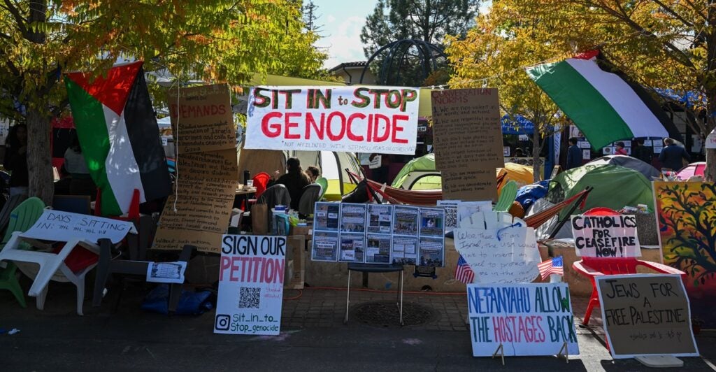 Last academic year, anti-Israel Stanford students with impunity violated university rules and camped out for months in the free speech area, shouting and disrupting passersby.