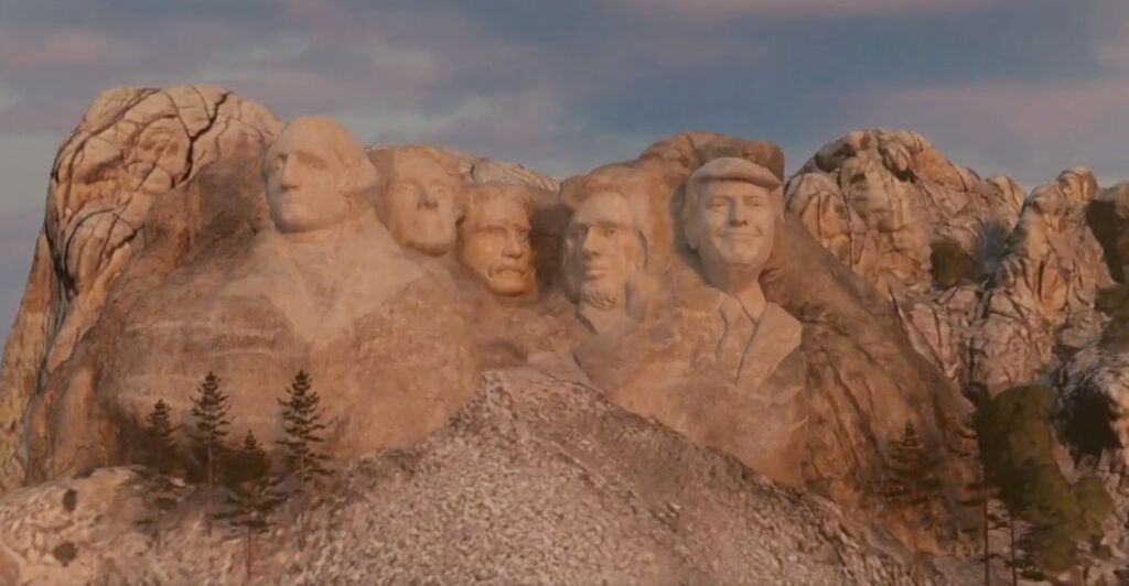 The ad is launching just hours ahead of Trump’s Tuesday evening address to a joint session of Congress, praises Trump for “doing what he said he would do,” and also shows an image of Trump’s face imposed on Mount Rushmore.
