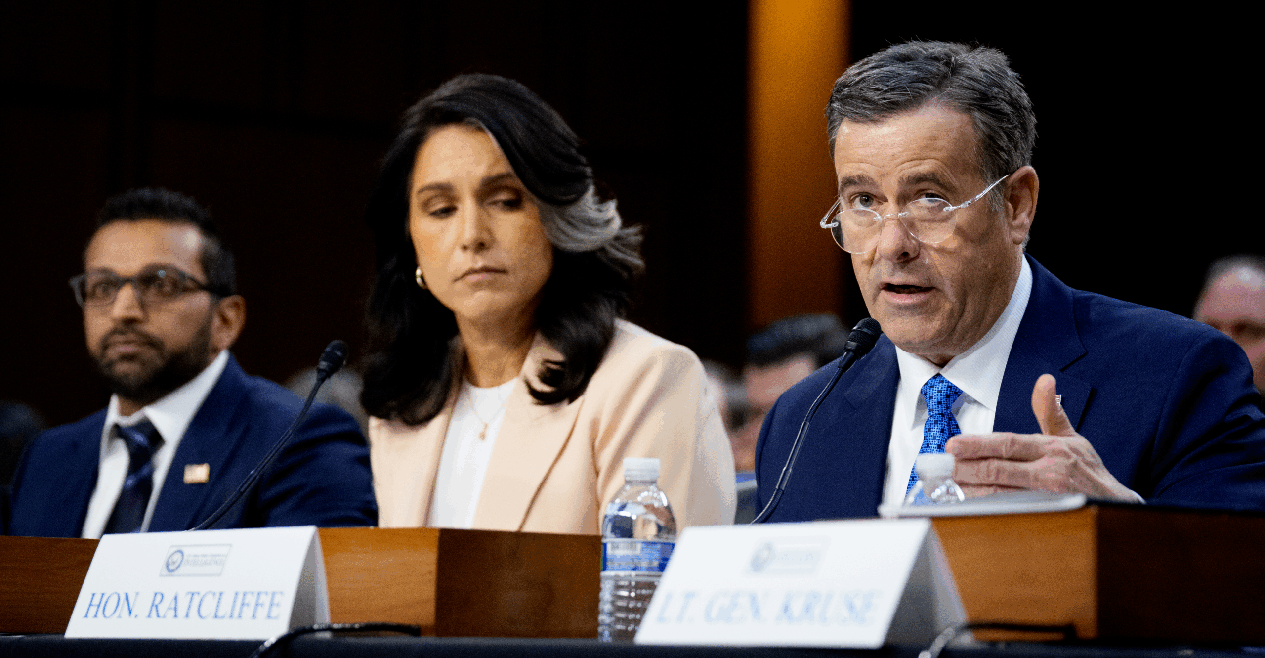 The panel of witnesses included Director of National Intelligence Tulsi Gabbard, CIA Director John Ratcliffe, FBI Director Kash Patel, National Security Agency Director Air Force Gen. Timothy Haugh, and Defense Intelligence Agency Director Air Force Lt. Gen. Jeffrey Kruse.