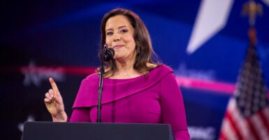 Asked by The Daily Signal after the press conference whether Stefanik would attend future press conferences, McClain smiled and said, “I don’t know. We’ll see. She is welcome. I love Elise. Elise is good people.”