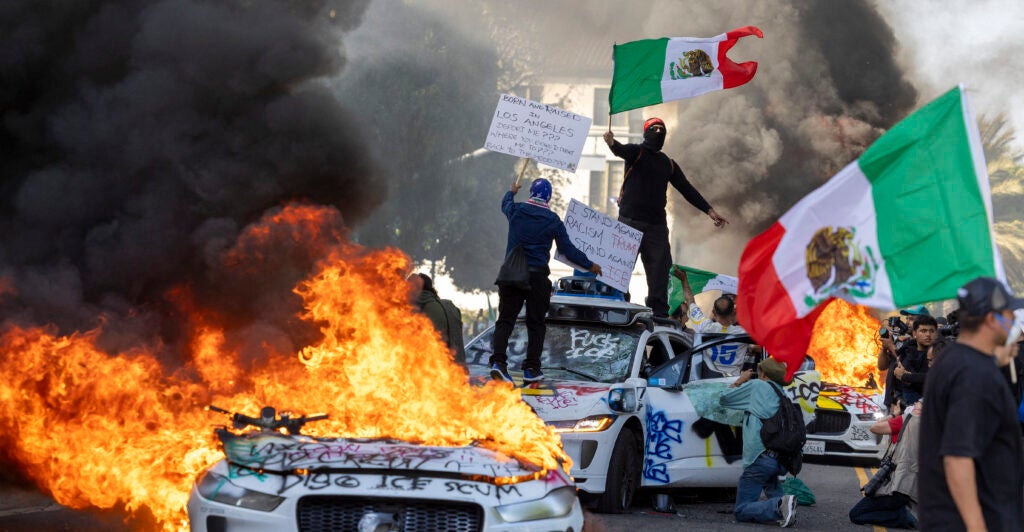 To them, disorder is not activists hurling bottles and rocks at ICE vehicles and members of the National Guard, torched self-driving cars and American flags, and freeways shut down to the taxpaying public.