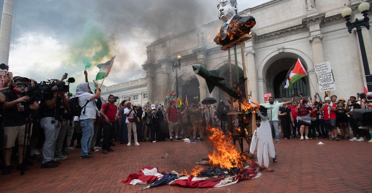 Anti-Israel protesters lowered three American flags outside Union Station last summer and burned them alongside an effigy of Israeli Prime Minister Benjamin Netanyahu. Protesters against immigration enforcement in California torched American flags and waved Mexican ones. Pro-Palestine protesters on college campuses like Columbia University have also burned the flag.