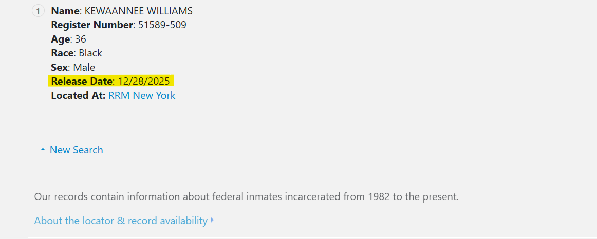 Kewaannee Williams was sentenced to seven years and six months. His sentence was commuted to under three and half years just ahead of Biden’s departure. Williams is set to be released on Dec. 28, according to the Oversight Project.