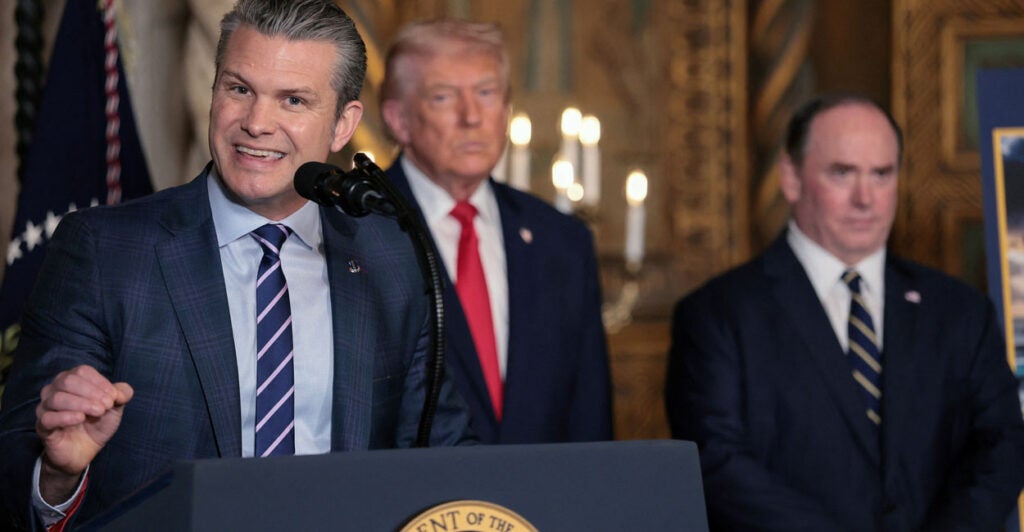 Trump made the announcement alongside Hegseth, Secretary of State Marco Rubio, and Navy Secretary John Phelan at his Mar-a-Lago residence in Palm Beach, Florida.