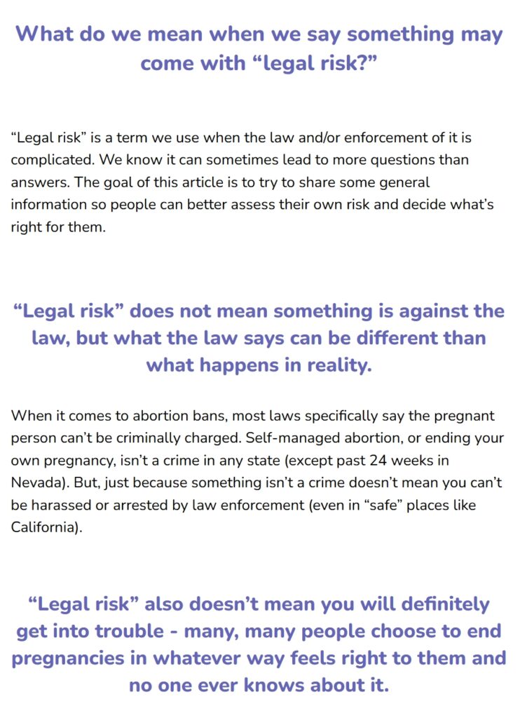A disclaimer under the order abortion pills online option claims that “taking pills on your own is medically very safe,” though “may come with legal risk.”