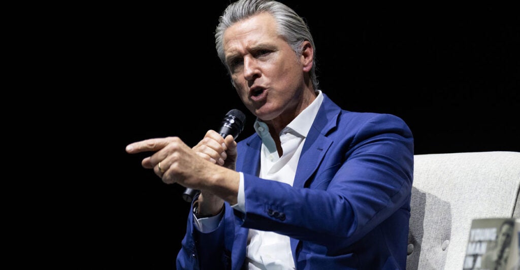 During an interview promoting his new book in Los Angeles, Newsom responded to a question by “Pod Save America” host Jon Favreau about whether the U.S. should reconsider its military support of Israel.