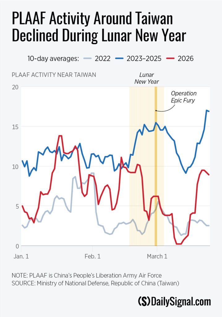Over the past few years, the Heritage Foundation has tracked the People’s Liberation Army’s (PLA) continuous presence and military drills around Taiwan. Those efforts complement research that has noted Beijing’s sustained preparation for a possible invasion of Taiwan. Interestingly, China’s military activities have decreased markedly below seasonal averages around Taiwan since the new year.