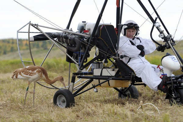 Vladimir Putin donned a white cloak, helmet and a crane’s beak and climbed into an ultra-light plane to lead a flock of endangered red cranes… Read More